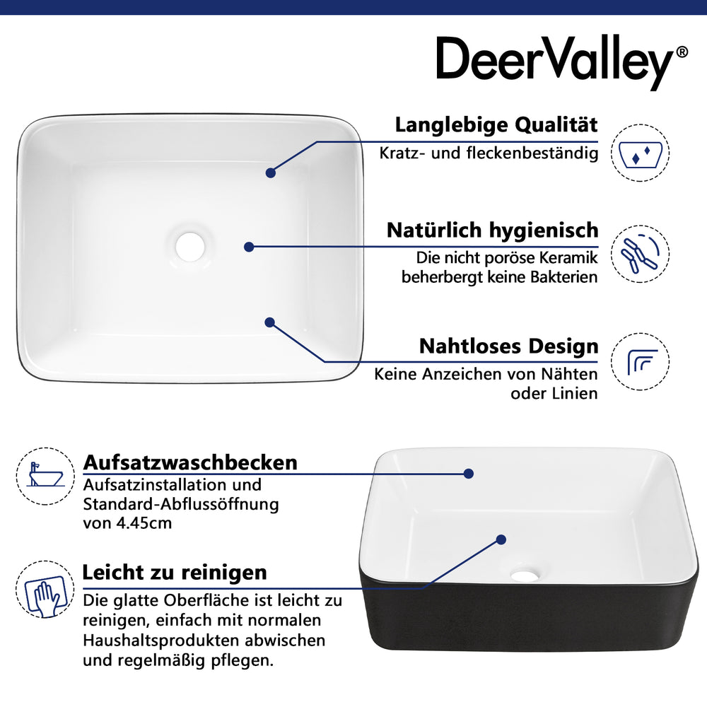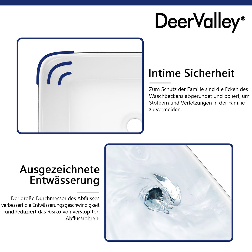 La vasque à poser DeerValley apporte une touche de simplicité et d'élégance à votre salle de bains. Avec son style épuré et moderne et ses angles légèrement arrondis, elle s'intègre parfaitement à toute salle de bains moderne ou classique, résidentielle ou commerciale. Ses bords arrondis empêchent efficacement l'accumulation de saleté et facilitent le nettoyage.