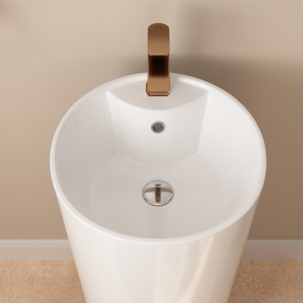 Découvrez l'élégance moderne du lavabo sur colonne DeerValley , qui apportera une touche d'originalité à votre salle de bains. Sa surface sans jointures offre non seulement une brillance raffinée, mais est également particulièrement facile à nettoyer et protège efficacement des rayures et des taches. Grâce à son profil fin, ce lavabo îlot est idéal pour les petites salles de bains, les salles de bains d'invités ou les espaces restreints.